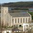 La iglesia de piedra presenta elementos arquitectónicos tradicionales con ventanas altas, una torre de campanario destacada y trabajo detallado en mampostería.