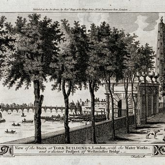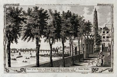 La torre de agua, construida a finales del siglo XVII por la Compañía York Buildings, suministraba agua dulce a Londres durante su crecimiento urbano.