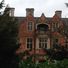 El edificio de arenisca roja presenta adornos de piedra de Bath, techos de pizarra con gabletes holandeses y varios techos de yeso decorados.