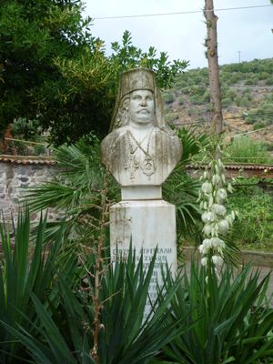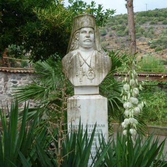 Bust of Efthymios Agritellis, Moni Leimonos, sculpted memorial in Greece
