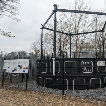 Iron gas-holder, Lavenham gasworks, architectural structure in Lavenham, Babergh, England, UK