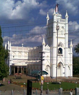 La construcción original en granito incorporó elementos del diseño de templos hindúes, reflejando la arquitectura religiosa tradicional de Kerala.