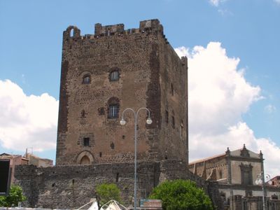 El Castello Normanno es una fortaleza en Adrano que funciona como edificio y espacio cultural. La torre de piedra rectangular se alza sobre la plaza y contiene varias cámaras en la planta baja divididas por un muro longitudinal, junto con un museo de arqueología regional, una galería de arte y archivos históricos.