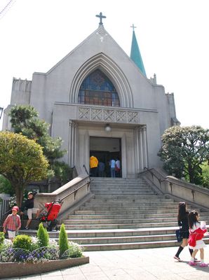 La iglesia original de 1862 fue reconstruida en 1906 con dos campanarios, pero el Gran Terremoto de Kantō de 1923 requirió una reconstrucción completa.