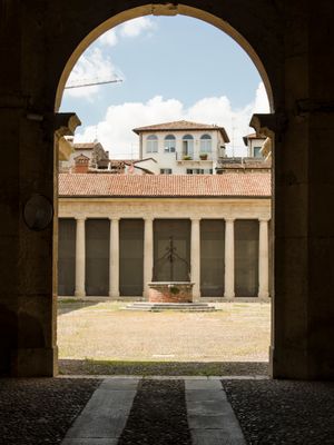 La Dogana di San Fermo es un edificio administrativo en el centro de Verona que presenta un patio rectangular con galerías porticadas y arcos en dos niveles. La estructura mantiene sus elementos arquitectónicos originales y hoy alberga funciones modernas relacionadas con restauración y preservación en el corazón de la ciudad.
