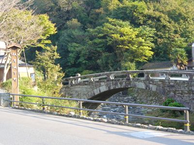 El puente se construyó en 1810 bajo la supervisión del administrador principal Miyazaki Oribe, reemplazando una estructura anterior de madera dañada por inundaciones.