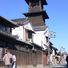 La Torre de la Campana del Tiempo se eleva 16 metros con tres niveles de arquitectura en madera en el centro del distrito tradicional de Kawagoe.