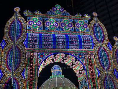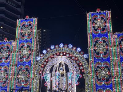 Las instalaciones luminosas combinan la artesanía japonesa con elementos del diseño italiano, creando estructuras iluminadas que se extienden por el Antiguo Asentamiento Extranjero.