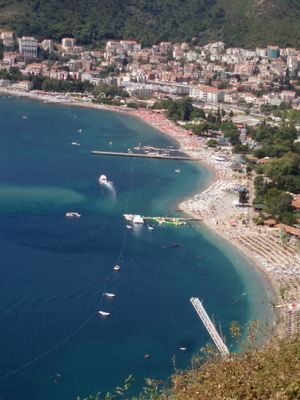 Playa eslovena, Playa en el centro de Budva, Montenegro.