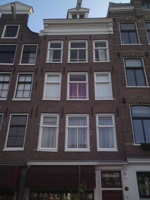 Pand met gevel onder rechte lijst met consoles, building in Amsterdam, Netherlands