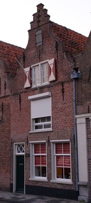 Pand onder diep zadeldak tegen oude achtergevel van puntvorm
