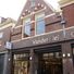Pand onder diep zadeldak tegen oude achtergevel van puntvorm, building in Enkhuizen, Netherlands