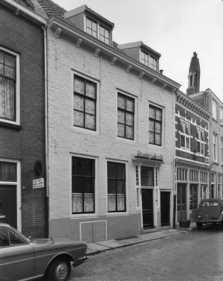 Dwarshuis met geverfde gevel, Rijksmonument op Latijnse Schoolstraat 5