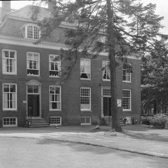 Pand met uitgestrekte gevel met brede ingangspartij en eenvoudig bovenlicht