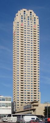 Conocido localmente como 'Dame aan de kade' o 'Dama en el muelle', esta estructura fue el edificio residencial más alto de los Países Bajos hasta 2022 cuando fue superado por De Zalmhaven.