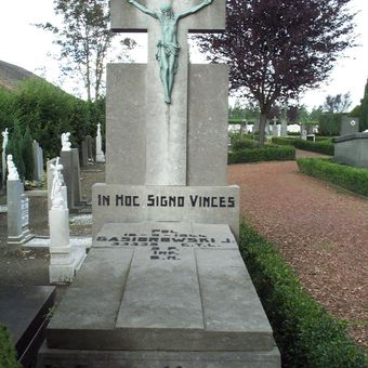 Grafmonument met een staand monument in fantasiestijl met kruis-bekroning voor de fam. Van Haelst-Thomaes