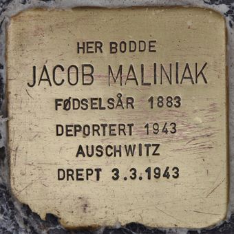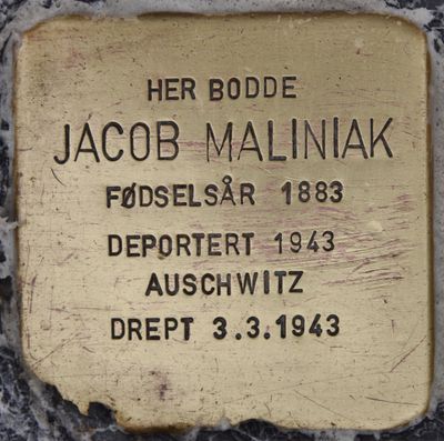 Stolperstein en memoria de Jacob Maliniak, stolperstein in Trondheim, Noorwegen