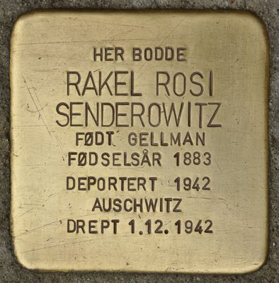 Stolperstein en memoria de Rakel Rosi Senderowitz f. Gellman, stolperstein in Oslo, Noorwegen