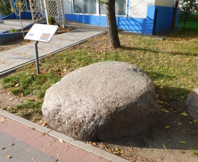Monumental glacial erratic at 10 Mozarta Street in Warsaw