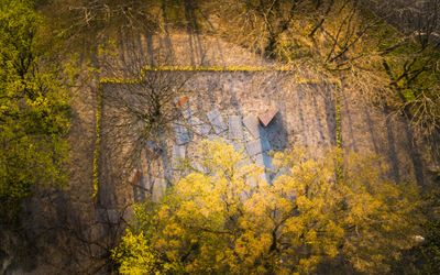 Las cuarenta losas de piedra utilizadas en la construcción provienen de residuos industriales de una cantera local.