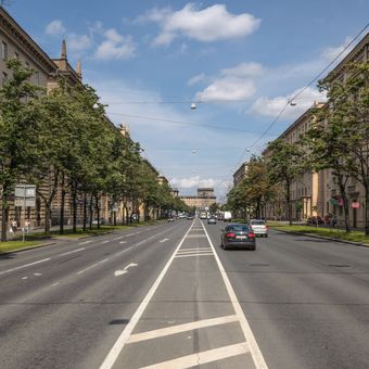 La avenida lleva el nombre de un movimiento obrero importante y muestra estilos constructivos de diferentes épocas de la arquitectura rusa. Al caminar por ella, se observa cómo los enfoques constructivos evolucionaron desde diseños más antiguos hacia otros más modernos.