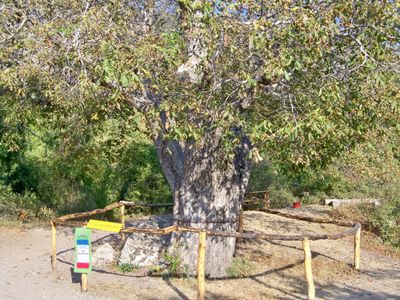 El antiguo nogal se encuentra en la entrada del Valle de los Fantasmas cerca del monte Demerdzhi, con una altura de 12 metros y 4.3 metros de circunferencia.