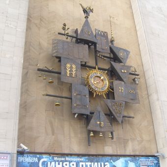 Часы на фасаде театра кукол, monument, street clock in Tverskoy District, Russia