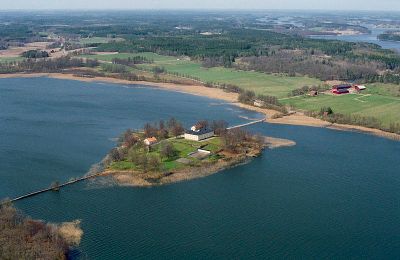 La estructura presenta arquitectura del Alto Renacimiento holandés con un edificio principal situado en una isla del lago Båven.