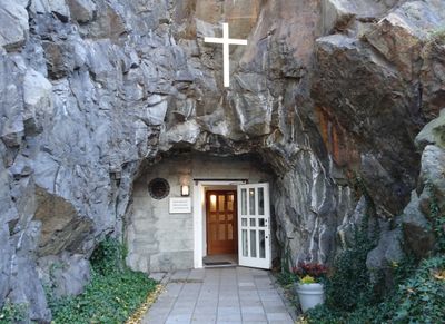 El columbario se extiende 40 metros en la roca bajo la Iglesia Engelbrecht, con paredes de mármol e iluminación indirecta que genera luminosidad.