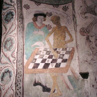 La muerte juega al ajedrez, Mural medieval en la Iglesia de Täby, Suecia