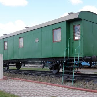 El museo presenta un vagón de pasajeros restaurado que contiene exposiciones sobre la unificación de dos repúblicas ucranianas en 1918-1919.