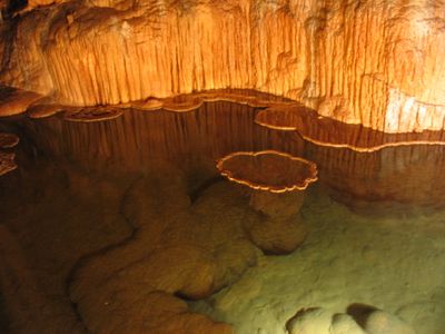 La Cueva Onondaga contiene formaciones geológicas extensas incluyendo estalactitas, estalagmitas y coladas distribuidas en un kilómetro de pasadizos iluminados.
