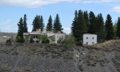 La Casa Paul Stock ocupa 620 metros cuadrados con un diseño en forma de H irregular, presenta paredes de estuco, tejas de arcilla y una posición elevada sobre el río Shoshone.