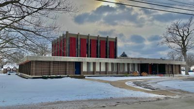 Temple Beth Israel presenta una estructura moderna con amplios ventanales que permiten el paso de luz natural al santuario principal.
