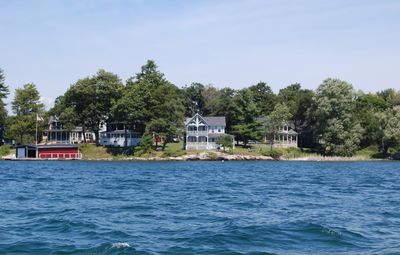 El Thousand Island Park Historic District es una comunidad residencial con casas de estilo victoriano y de tejas que se encuentran a lo largo del río St. Lawrence en Nueva York. El área contiene cientos de casitas distribuidas en una isla accesible por puentes y barco, con calles arboladas y vistas al río.