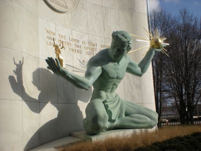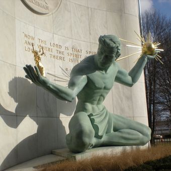 Marshall Fredericks completó esta obra monumental en 1958, convirtiéndola en la escultura de bronce fundido más grande desde el Renacimiento.