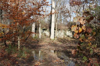 El bosque alberga hornos de coque belgas construidos con ladrillos numerados enviados desde Europa, representando una conexión con el patrimonio industrial.