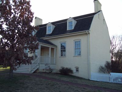 La organización Prince George's Heritage mantiene la propiedad en la intersección de Kenilworth Avenue y Annapolis Road, mostrando la arquitectura colonial.
