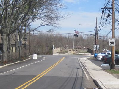 El contrafuerte del puente funciona ahora como memorial a los veteranos en la intersección de PA 32 y PA 332 en Yardley.