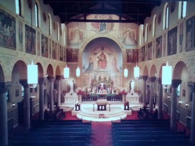 La iglesia contiene murales Beuronese que representan la vida de Cristo, realizados por monjes benedictinos entre 1908 y 1910. Estas obras de arte reflejan la devoción religiosa de la comunidad de habla alemana y siguen marcando el interior del edificio.