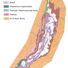 La Cuenca Culpeper se extiende desde el Condado de Madison hasta Frederick, Maryland, con capas de limolita, arenisca y rocas conglomeradas con intrusiones de diabasa.