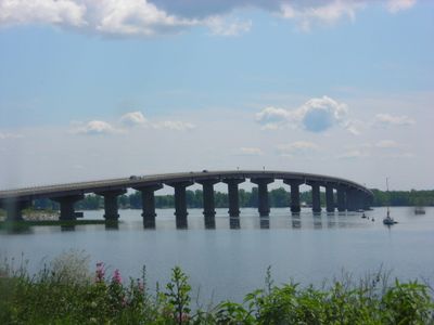 El puente Rouses Point se extiende 1.829 metros sobre el lago Champlain, uniendo las comunidades de Rouses Point, Nueva York, y Alburgh, Vermont.