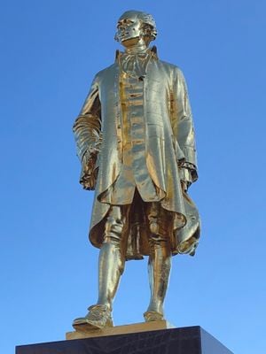 El escultor inglés John Angel creó esta representación de Alexander Hamilton, que recibió una restauración completa y un nuevo dorado en 2016.