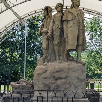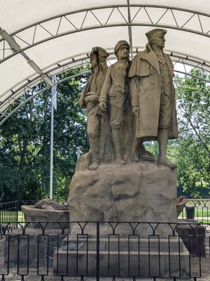 Start Westward Memorial, Estatua conmemorativa de arenisca en Parque Muskingum, Marietta, Estados Unidos