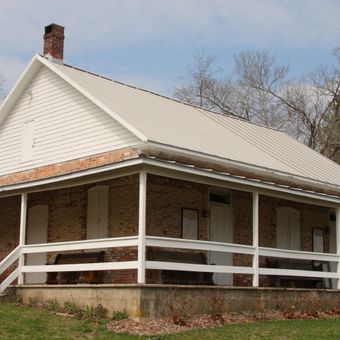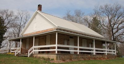 La Casa de Reunión de Amigos de Pipe Creek se alza como una estructura de ladrillo con construcción Flemish bond sobre cimientos de piedra.