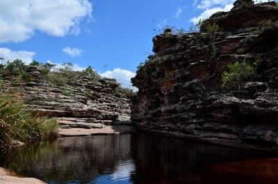 El Monumento Natural Cachoeira do Ferro Doido es un sitio natural protegido en la región de Chapada Diamantina con un salto de agua que cae en un cañón y fluye a través de múltiples cascadas. El área abarca un amplio paisaje boscoso con capas de roca expuestas y terreno variado.
