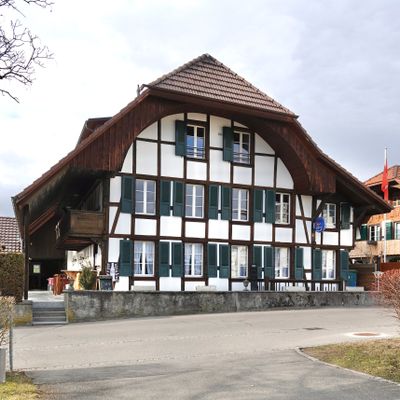 Inn to the joyful view, guest and half-timbered house in Zollikofen in the canton of Bern, Switzerland