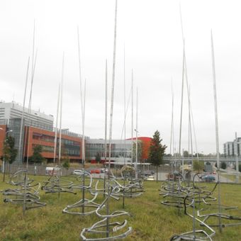 Plastika Nakloněné kruhy v kampusu Masarykovy university v Bohunicích