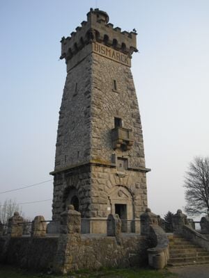 La torre representa el movimiento arquitectónico alemán de estructuras conmemorativas construidas entre 1890 y 1910 para recordar a Bismarck.