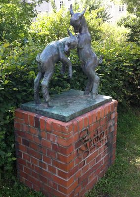 Playing goats, sculpture by Wilhelm von Winterfeld in Berlin-Siemensstadt, Germany
